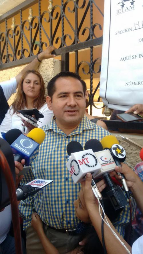 Acompañado de su familia acudió a la casilla de la colonia Frente Democrático, en donde señaló que de acuerdo con los reportes obtenidos hasta el mediodía, la jornada electoral transcurre con normalidad y sin incidentes.