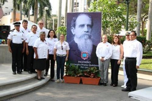 Tampico, Tamaulipas.-El presidente municipal de Tampico Gustavo Torres Salinas, acompañado por su esposa la Presidenta del Sistema DIF, Silvia Alcaraz de Torres encabezó la ceremonia del 95 aniversario luctuoso del Ingeniero Alejandro Prieto Quintero, personaje ilustre de Tamaulipas y México, que con sus conocimientos contribuyó al desarrollo de la entidad.