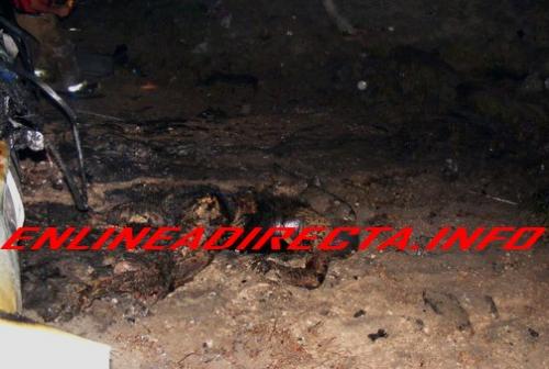 Se conoció que en su interior se encontraba calcinado el cuerpo de una persona quien al parecer fue identificada como Ever Óscar Salinas, misma que murió trágicamente tras haber sido impactado por un trailer tipo Fahrenheit, con placas de circulación 772-EW-9 del Servicio Público Federal, mismo que se dio a la fuga con rumbo desconocido solo quedo una de las placas de la pesada unidad.