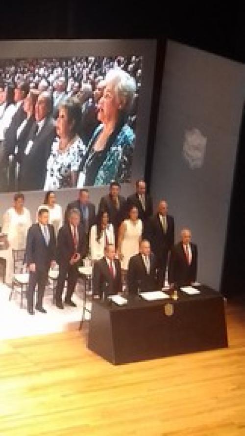 A este informe acudió en representación del gobernador, Egidio Torre Cantú asistió el secretario de administración, Fernando Salinas Zambrano quien reconoció la gestión de la primera autoridad.