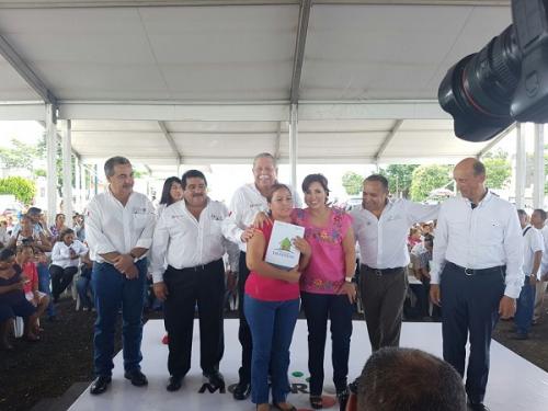 Altamira, Tamaulipas.- Este medio día de martes en el municipio de Altamira estuvo presente Rosario Robles Berlanga Secretaria Federal de Desarrollo Agrario, Territorial y Urbano acompañada del Director General de la CORETT Sergio Alcántara Núñez, del gobernador Egidio Torre, autoridades federales, estatales y de la localidad para completar mil acciones que corresponden a la entrega de escrituras, títulos de propiedad, certificados de cuartos rosa entre otros documentos que otorgaran certeza judicial en la tenencia de la tierra y pertenencia de patrimonios familiares.