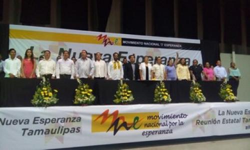 Tampico Tamaulipas.-Ante más de 3 mil personas procedentes de diversos municipios de Tamaulipas, René Bejarano Martínez, integró este sábado al Movimiento Nacional por la Esperanza, el cual dijo no solo estará presente en elecciones sino que estarán todo el tiempo porque son la esperanza para este país, ya que pugnarán para que los gobiernos mejoren la calidad de vida de la gente.