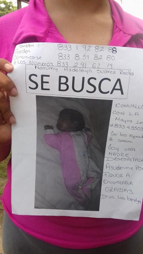 Tampico, Tamaulipas.-Angustiada madre de familia clama le devuelvan a su hija, de un mes y 15 días de nacida, la cual fue sustraida de su vivienda ubicada en la colonia Ampliación Revolución Verde de Ciudad Madero, el pasado sábado.