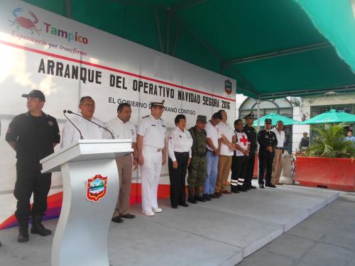 En la Plaza de Armas de Tampico, la primera autoridad municipal, puso en marcha estas acciones contando con la participación de la Secretaría de la Defensa Nacional, la Marina Armada de México, la Policía Federal, Policía Estatal, Cruz Roja delegación Tampico, y por parte del municipio, la dirección de