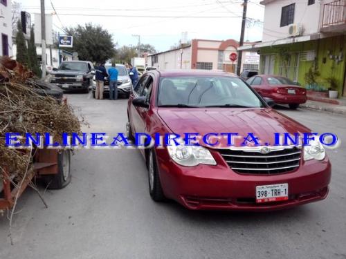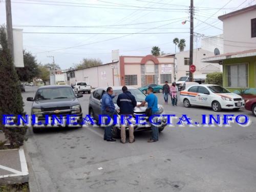Reynosa, Tamaulipas.-El accidente vial se registro en una concurrida arteria vial, donde el saldo final fue de solo daños materiales y el susto que se llevaron los tripulantes de dos unidades.