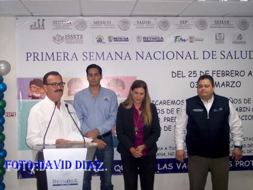 Reynosa, Tamaulipas.-Autoridades de los tres niveles de gobierno pusieron en marca la primera semana nacional de salud, donde se pretende aplicar una cantidad importante de dosis en especial a menores de edad.
