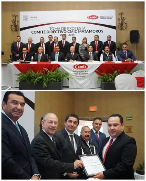 El presidente municipal tomó la protesta al nuevo comité de la CMIC, delegación Matamoros-Valle Hermoso, que encabeza Jorge Pablo Eduardo Panduro, en sustitución de Humberto Leal Rodríguez.