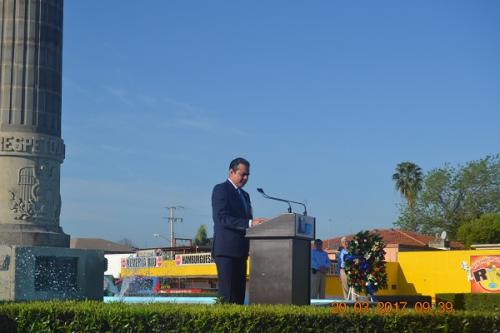Luego de felicitar a los alumnos de la primaria Reyes Heroles, el alcalde dirigió unas palabras a síndicos y regidores que lo acompañaron, así como a los padres de los alumnos participantes en el evento, ante quienes dijo que este día “el país rinde homenaje a uno de sus más grandes hijos, Don Benito Juárez García…que a la postre sería uno de los grandes fundadores del México de layes y de instituciones que nos ha sido legado, y cuyo pensamiento universal lo ha considerado como el Benemérito de las Américas”, expresó.