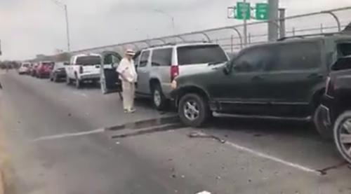 Matamoros, Tamaulipas.-El choque de varios vehículos en el Puente Internacional Ignacio Zaragoza este fin de semana dejó como saldo a los conductores con crisis nerviosa, no personas lesionadas y cuantiosos daños materiales en cinco vehículos.