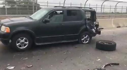 Asimismo en el video se alcanza a apreciar que los vehículos dañados son una camioneta Chevrolet Suburban de color gris rata modelo 2016, una camioneta Ford Explorer en color verde con láminas de circulación fronterizas con terminación 72-16, una camioneta Chevrolet Cheyenne de color obscuro, y otras dos camionetas de la marca Ford que también resultaron severamente afectadas.