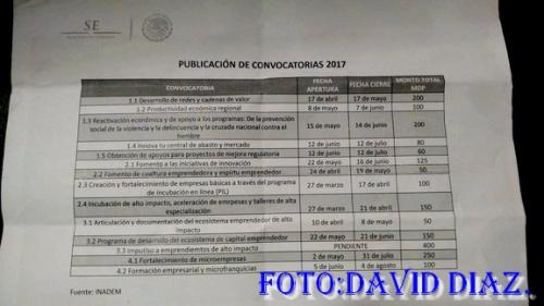Añadió el funcionario federal que la convocatoria inicio el día 17 de Abril del presente año y la última convocatoria el cierre es el 21 de Junio del presente año según sea el rubro o proyecto que la persona presente por lo que invito a todas esas personas se informen para que puedan obtener esos programas que está impulsando la Secretaria de Economía Federal, puntualizó.