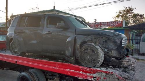 Tras realizar una revisión muy completa al vehículo, los elementos de la unidad R025 de Bomberos confirmaron que no había ocupantes en el auto del auto Chevrolet HHR de color gris, de reciente modelo, con placas de circulación DFL-0963 del Estado de Texas, el cual quedo completamente destruido por el accidente.