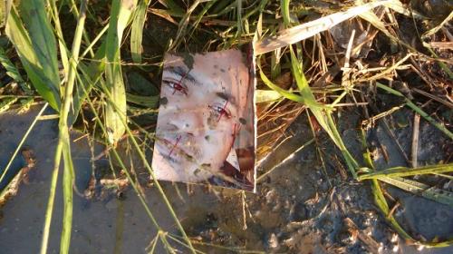 Lo raro del caso es que aparecieron varias fotografías donde aparece el rostro de un hombre de barba, joven como de 28 años, con cruces pintadas en tinta roja en los ojos, boca, y oídos, típicos de una hechicería.