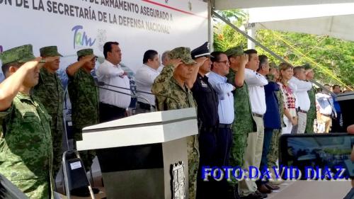 En el uso de la palabra el mandatario estatal Francisco Javier García Cabeza de Vaca, dijo, que esa ceremonia de destrucción de armamento asegurado en Nuevo León, Tamaulipas y San Luis Potosí es buen ejemplo de ello.