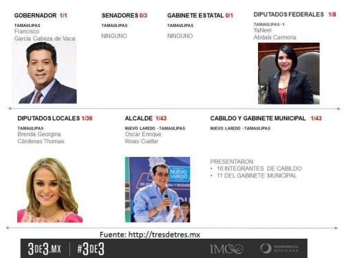 Reynosa, Tamaulipas.-Con excepción del Gobernador del Estado Francisco Javier García Cabeza de Vaca y el alcalde de Nuevo Laredo. Enrique Rivas Cuellar, el resto de alcaldes y legisladores locales y federales incumplieron el compromiso de hacer pública la información de su estatus patrimonial en la Ley “3 de 3” que se comprometieron apoyar y firmar durante sus campañas electorales.