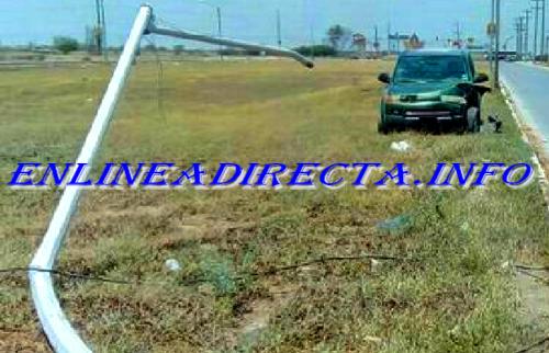 Otro accidente vial se registró poco después de las 13:00 horas sobre la entrada a la colonia Los Almendros, donde una camioneta Saturn Vue, color verde, modelo aproximado 2000, sin placas derribara un arbotante.