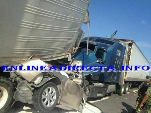 Reynosa, Tamaulipas.-Aparatoso accidente vial ocurrió en una concurrida carretera Federal, donde el saldo final fue de por lo menos cuatro personas muertas, y cuantiosos daños materiales, además del cierre parcial de la carretera.