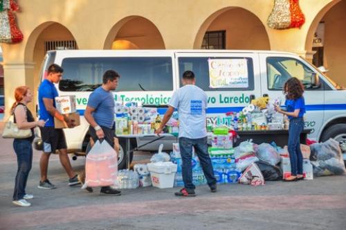 Nuevo Laredo, Tamaulipas.-Estudiantes de la Universidad Tecnológica se organizaron para un acopio de víveres no perecederos y artículos de limpieza, que fueron entregados las personas que resultaron afectadas por los sismos en Oaxaca, Chiapas, Puebla, Morelos y la Ciudad de México.