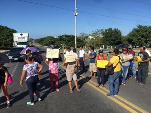 Altamira, Tamaulipas.-Por lo menos 20 vecinos de las colonias Huatulquito y Acapulquito de Altamira bloquearon el Libramiento Poniente para exigir a la autoridad federal el retiro de una barrera de contención que impide el libre paso hacia esos sectores.