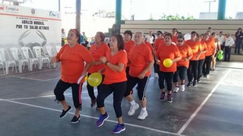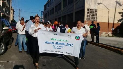 Tampico, Tamaulipas.-Con una caminata y una sencilla ceremonia autoridades de la Jurisdicción Sanitaria No. II llevaron a cabo “El Abrazo Mundial”, con el propósito de activar a las personas de la tercera edad, luego que de 10 personas, solo 3 hacen ejercicio u otras actividades.