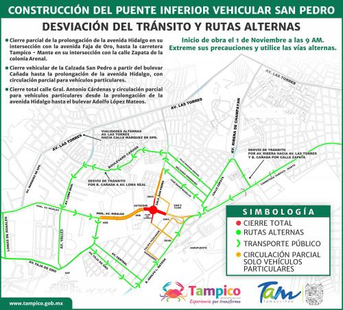 > Cabe recordar que el cierre parcial de la prolongación de la avenida Hidalgo en su intersección con calle Faja de Oro, hasta carretera Tampico – Mante en su intersección con calle Zapata, iniciará a partir del 1 de noviembre a las 09:00 horas.
