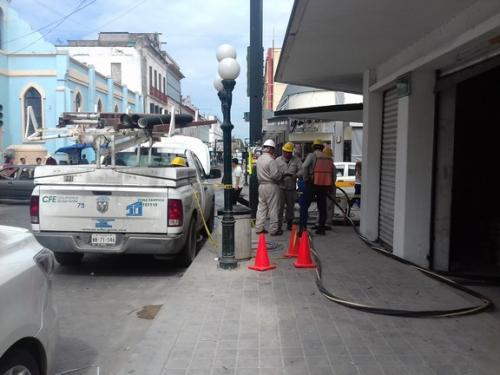Este día, las cuadrillas de trabajadores de la Comisión Federal de Electricidad estaban trabajando en calle Carranza y Juárez, por lo que algunos locales de esas calles estaban sin energía eléctrica.