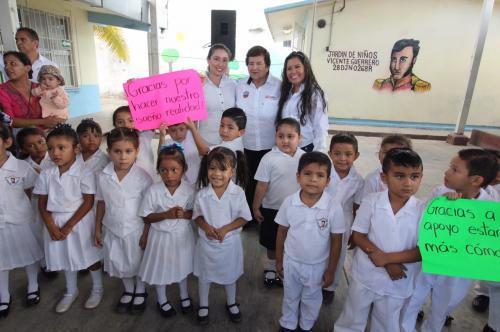 > En primera instancia, la alcaldesa Magdalena Peraza Guerra, acompañada por integrantes del Cabildo porteño, entregó a los alumnos y personal docente del jardín de niños Vicente Guerrero ubicado en la colonia del mismo nombre, un comedor escolar que les permitirá consumir sus alimentos en un sitio digno y adecuado.