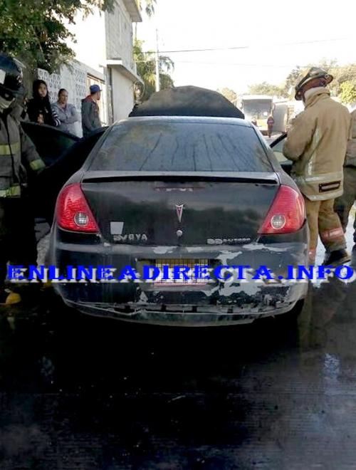 Los hechos ocurrieron sobre la calle Marrón con Plata, de la colonia Arcoíris, donde residentes de ese sector solicitaban a los bomberos, ya que una unidad tipo Pontiac, color negro, modelo aproximado 1998, sin placas mismo que se estaba quemando.