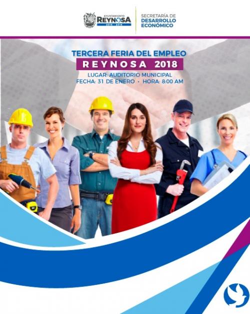 Reynosa, Tamaulipas.-Entre las acciones que la alcaldesa Maki Esther Ortiz Domínguez efectíºa para impulsar la ocupación laboral, llevará a cabo la “Tercera Feria del Empleo, Reynosa 2018”, que, a través de la Secretaría de Desarrollo Económico y del Empleo del Gobierno Municipal será celebrada el próximo miércoles 31 de enero, de las 8:00 a las 13:00 horas en el Auditorio Municipal.