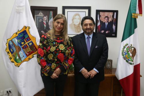 Reynosa, Tam.-La presidenta municipal Maki Esther Ortiz Domínguez recibió al cónsul de México en McAllen, Texas, Eduardo Guadalupe Bernal Martínez.