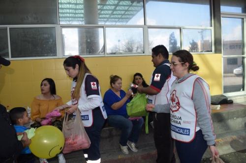 Matamoros, Tamaulipas.-En un acto meramente humano de parte de la Cruz Roja de Matamoros, jóvenes de la Sección 13-16 del área de Juventud de la Delegación Matamoros, llevaron a cabo una jornada humanitaria y entregaron en las manos de los familiares de personas internadas, alimentos, dulces y palabras de aliento a seguir adelante y luchar porque salgan pronto de esa situación de emergencia en la que se encuentran.