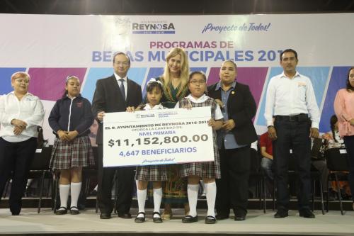 La presidente municipal de Reynosa hizo entrega de las becas para los rubros ya citados, agregando que estos tipos de apoyos educativos también los tienen los de buen aprovechamiento, estudiantes con capacidades diferentes e hijos de internos en el Centro de Ejecución de Sanciones (CEDES).