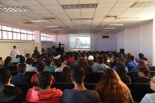 Los estudiantes que asistieron a la plática pertenecen a todas las carreras que se imparten en dicha universidad, y fue el coordinador de la carrera de mantenimiento quien hizo la presentación del general y del personal castrense que lo acompañó hasta esa casa de estudios, en representación del rector, Alfonso Salas Pérez.
