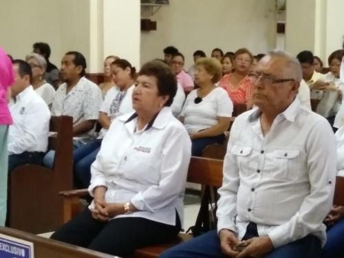 Tampico, Tamaulipas.-La maestra Magdalena Peraza Guerra, candidata del Partido Revolucionario Institicional a la alcaldía de Tampico, acudió hoy a misa de acción de gracias por el inicio de su campaña política, la cual expresó será limpia y de respeto.