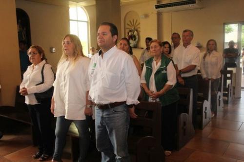 La celebración religiosa se efectuó en la Iglesia de la colonia Lomas de Rosales, a las 08:00 horas, a la que acudió acompañado de su esposa Mariel Herrera de Acevedo, así como la planilla que conformará su cabildo de ganar los comicios del 1 de Julio.
