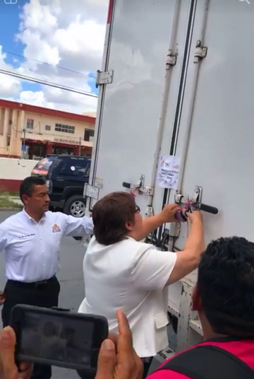 La caja del tráiler que transportó las más de 800 mil boletas electorales que serán utilizadas el 1 de julio, estaba sellada desde su salida en la capital del estado con destino a Reynosa y en esta frontera fue abierto en forma píºblica y constatar que no hubo ninguna alteración durante el viaje de tres horas y media.