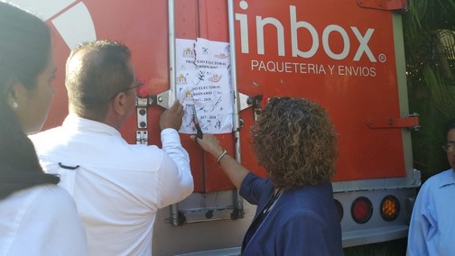 Inmediatamente se metió el vehículo al estacionamiento del Consejo Municipal Electoral en esta ciudad, que preside Lili Cobos González, misma que invitó a los consejeros a constatar los sellos que traia el camión y su apertura para descargar su material electoral.