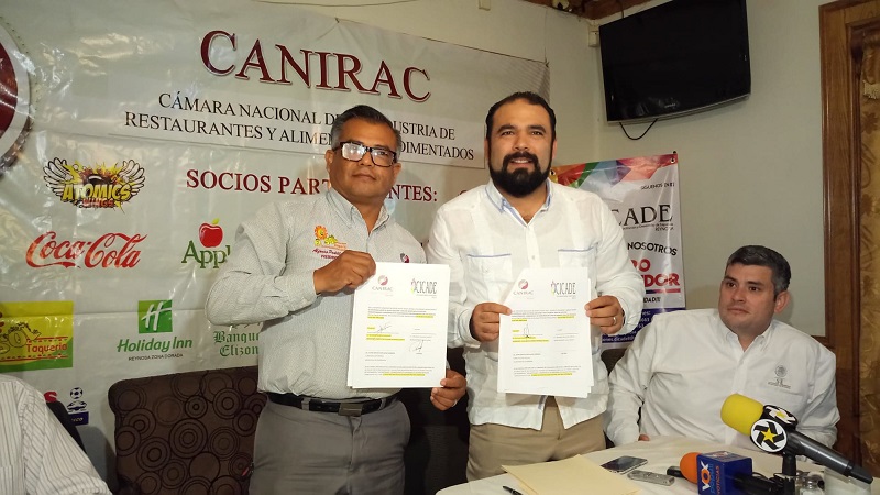 Reynosa, Tamaulipas.-Con la finalidad de fomentar y promover el desarrollo de emprendedores de la industria restaurantera, el Centro de Incubación, Capacitación y Desarrollo de Empresas (CICADE), realizó la firma de un convenio con la Canirac y el departamento de turismo de Reynosa para coadyuvar al progreso de esta ciudad.