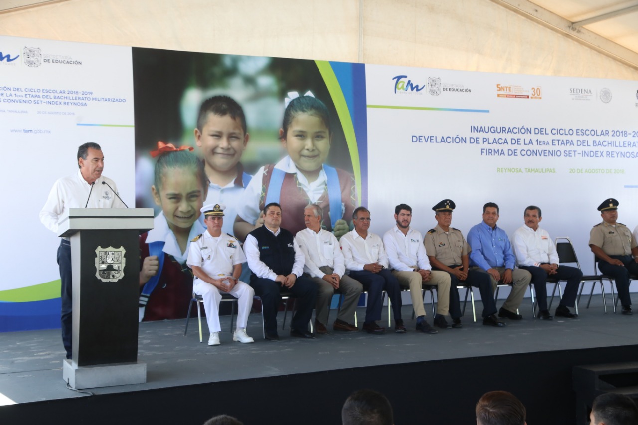 Cabe destacar que en la inauguración del Bachillerato Militarizado, también participaron el general de división DEM, Luis Crescencio Sandoval González, comandante de la Cuarta Región Militar; general de brigada DEM, Adelfo Castillo López, comandante de la Octava Zona Militar; el capitán de naví­o de Infanterí­a de Marina DEM, Daniel ílvarez Navarrete; José Rigoberto Guevara Vázquez, secretario general de la sección 30 del SNTE; Enrique Castro Septién, presidente de INDEX Reynosa; Héctor Escobar Salazar, secretario de Educación de Tamaulipas; Cecilia Del Alto López, Francisco J. Garza De Coss, Germán Pacheco Dí­az y Jesíºs Villarreal Cantíº.