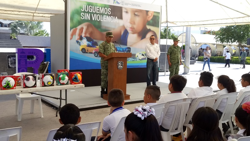 El comandante del 19 Regimiento de Caballería de la Octava Zona Militar, Ariel Gómez Romero destacó que el propósito de esta actividad es cambiar a los niños la idea de cómo jugar sin recurrir a cualquier acto violento.