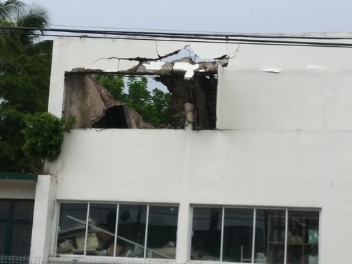 Tampico, Tamaulipas.-Un rayo cayó a esta mañana sobre el techo del antiguo edificio que albergaba las oficinas del CAPASITS Tampico, ubicado en la calle Alarcón de la colonia del Pueblo, el cual se desplomó, instalaciones de la Secretaría de Salud y que desde hace mucho tiempo había sido dictaminada por Protección Civil para que se desalojara, y es usado para resguardar las unidades.