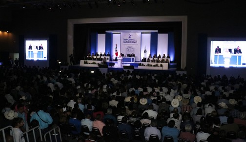 En el marco de la doceava sesión extraordinaria de cabildo llevada a cabo en el gimnasio œDr. Burton Grossman™™ del IEST, que contó con la asistencia de la secretaria de Salud, Gloria de Jesíºs Molina Gamboa, en representación del gobernador del Estado, Francisco García Cabeza de Vaca, se efectuó la lectura de la glosa informativa donde la jefa edilicia detalló el estado que guarda la administración que preside y un resumen de las acciones más relevantes efectuadas durante este segundo año de trabajo, comprendidas en el Plan Municipal de Desarrollo 2016-2018.