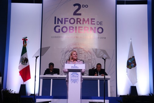 Altamira, Tamaulipas.-La alcaldesa Alma Laura Amparán Cruz al rendir el Segundo Informe Anual de Labores del Republicano Ayuntamiento de Altamira dijo que su gobierno está haciendo historia en la zona sur de Tamaulipas, siendo hoy Altamira un municipio líder colocado, con indicadores que así lo demuestran, en las primeras posiciones de los planos estatal y nacional en varios aspectos.