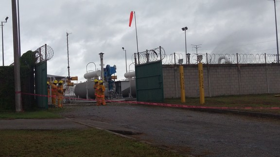 Altamira, Tamaulipas.-Se trató de un escenario míºltiple en el Macro simulacro de la AISTAC, donde se presentó una fuga de gas en una línea que abastece a la planta Iberdrola que desencadenó un flamazo, hiriendo a dos técnicos y un jardinero, a la vez la explosión generó un choque con volcadura de una pipa con ácido sulfíºrico.