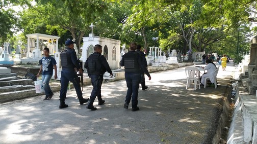 “En este lugar realizan sus rondínes de vigilancia para que todo se desarrolle con toda tranquilidad, orden y paz, que haga rondines en los tres cementerios a diferente hora del día, que se alternen, aquí tenemos nuestros propios trabajadores, los del sindicato y además trabajadores libres y no lo podemos controlar en absoluto pero si se quiere.se puede, por eso si vamos a pedir el apoyo de policías estatales”.
