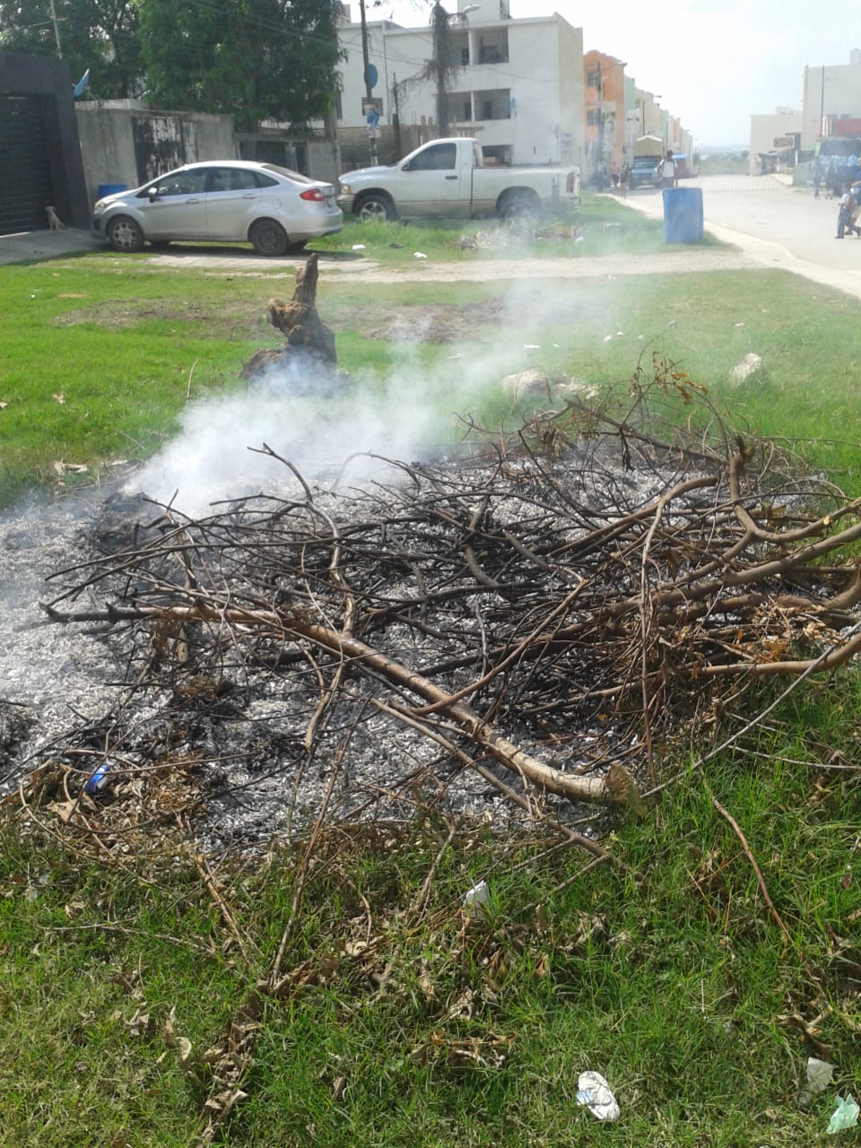 Altamira, Tamaulipas.- Quema irresponsable de basura en el fraccionamiento Los Arados de Altamira casi termina en contingencia mayor al medio día de este miércoles. Bomberos Altamira recibió el reporte solicitando su presencia para controlar el fuego que por poco se extendía hacia una vivienda que se encontraba a escasos metros de distancia.