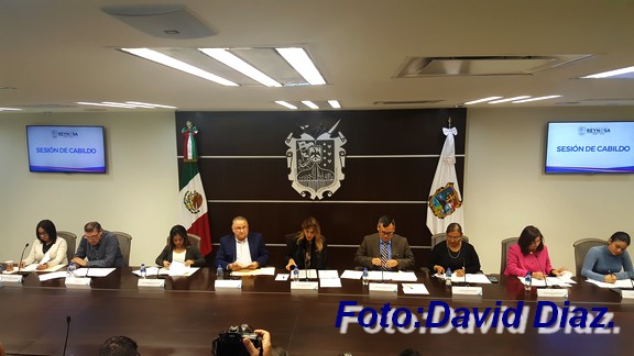 La sesión de Cabildo fue presidida por la Presidente Municipal de Reynosa, la doctora Maki Esther Ortiz Domínguez, quien acompañada de los integrantes de ese cuerpo colegiado Síndicos y Regidores llevaron a cabo esa sesión.