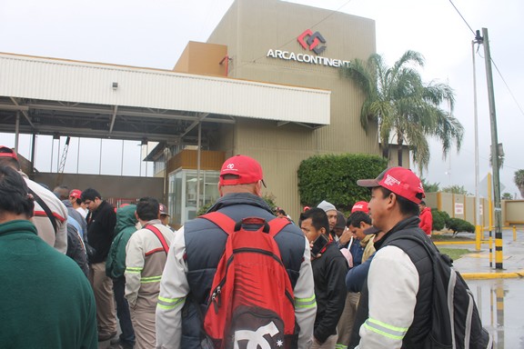 Matamoros, Tamaulipas.-Los obreros de la empresa Arcacontinent, distribuidor de los productos de la Coca-Cola, se declararon en paro de labores, con la finalidad de presionar para que se les aumente un 20 por ciento de salario y se les pague un bono de 32 mil pesos.