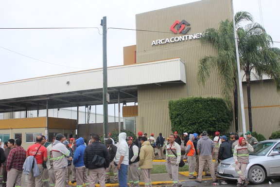 Los obreros se apostaron a las afueras del acceso principal de la embotelladora, en donde de manera diaria se registran grandes movimientos de entrada y salida de las bebidas gaseosas, lácteos y otros productos.