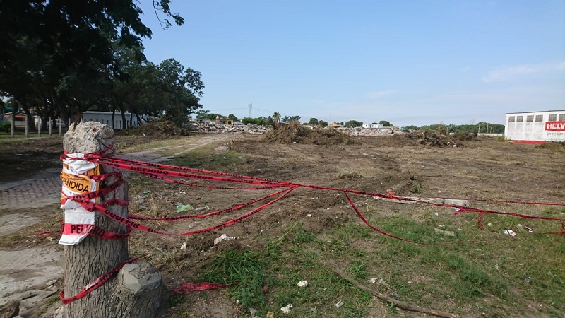 Altamira, Tamaulipas.- Un tráiler derriba poste de Comisión Federal de Electricidad en el acceso al fraccionamiento Valle Esmeralda residencial todo esto sobre el Boulevard Primex que comunica al puerto de Altamira, personal de Protección Civil de Altamira apoya en las labores junto con trabajadores de Comisión Federal de Electricidad.